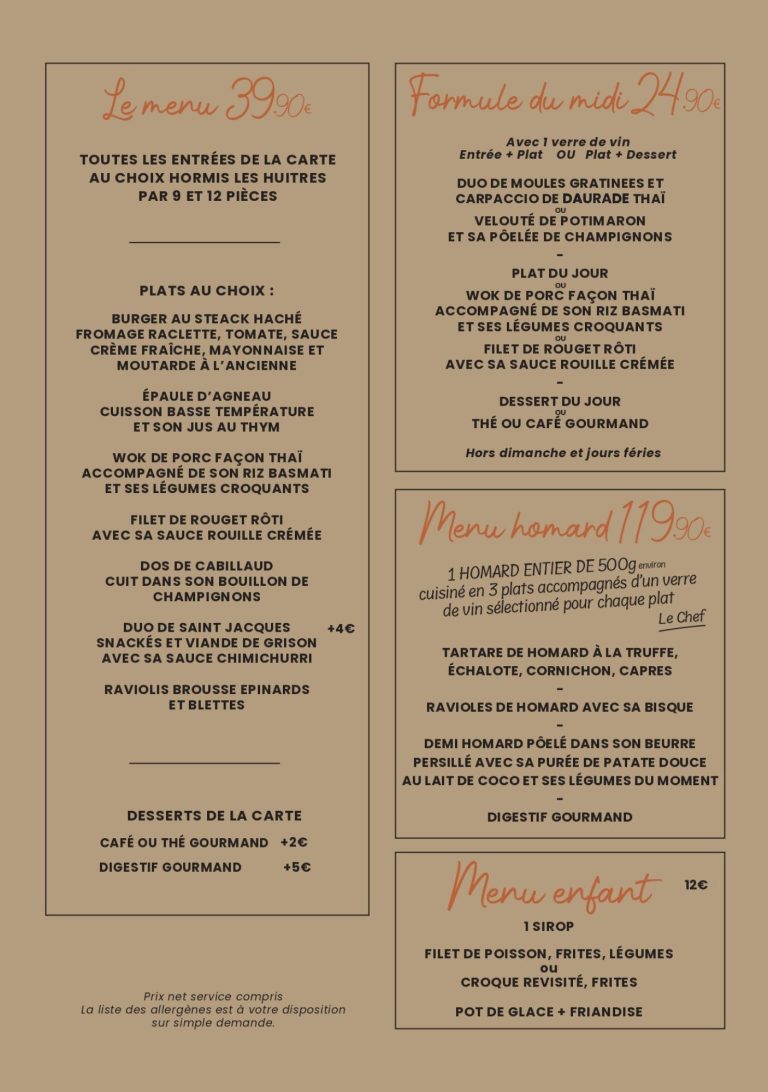 - Menu HOMARD à 119.90 €