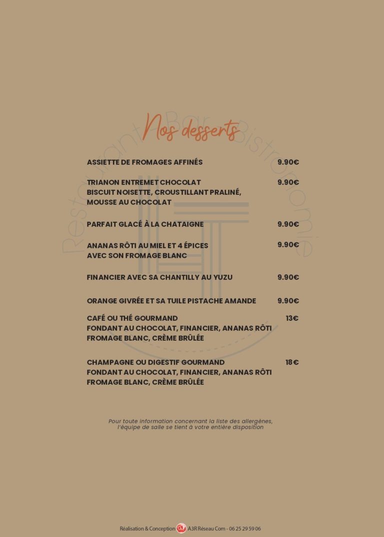 Découvrez la carte des desserts