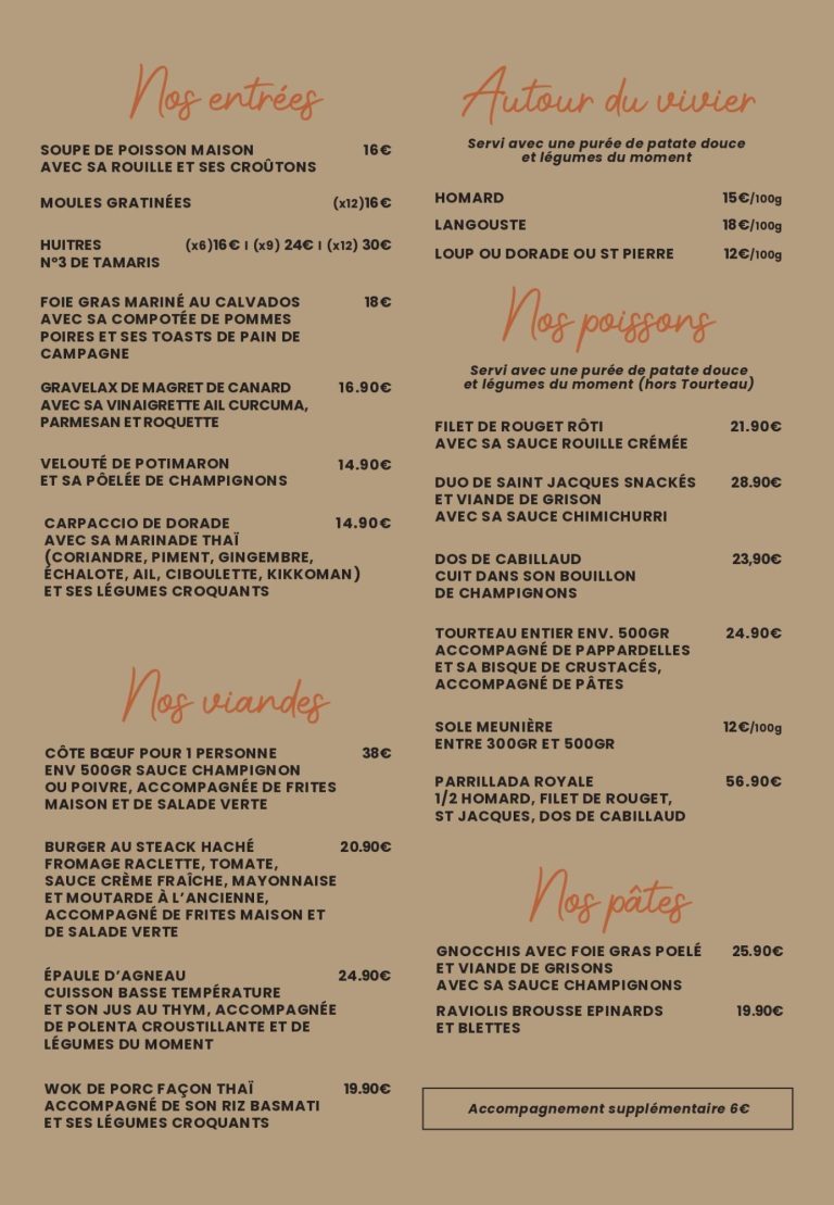 Découvrez les différents menus et formules